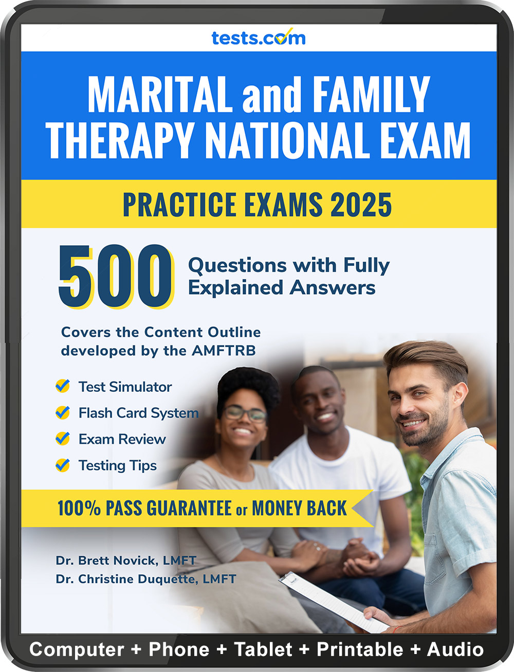 This practice test covers the MFT exam content outline developed by the Association of Marital & Family Therapy Boards (AMFTRB). The answers are explained for ideal study.